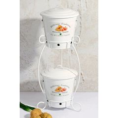 Beyaz 3 katlı patates soğan sepeti sebzelik meyve sepeti.